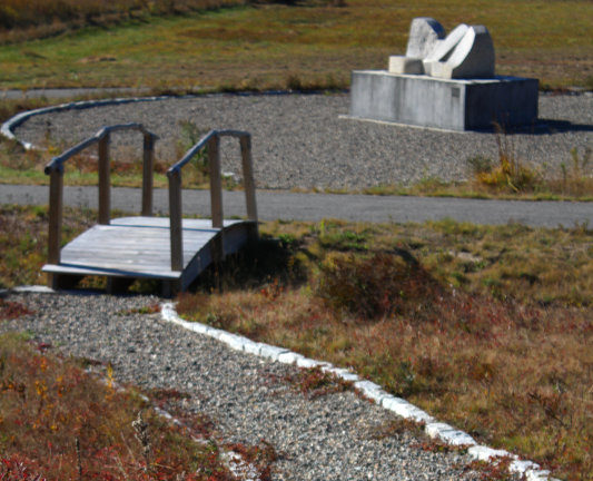 HFHC’s Walking Track became a location in 2014 as part of the Schoodic International Sculpture Symposium. A local sculpture committee led the process to select Roy Patterson to create Time and Tide using Englishman’s Bay granite from Jonesboro.